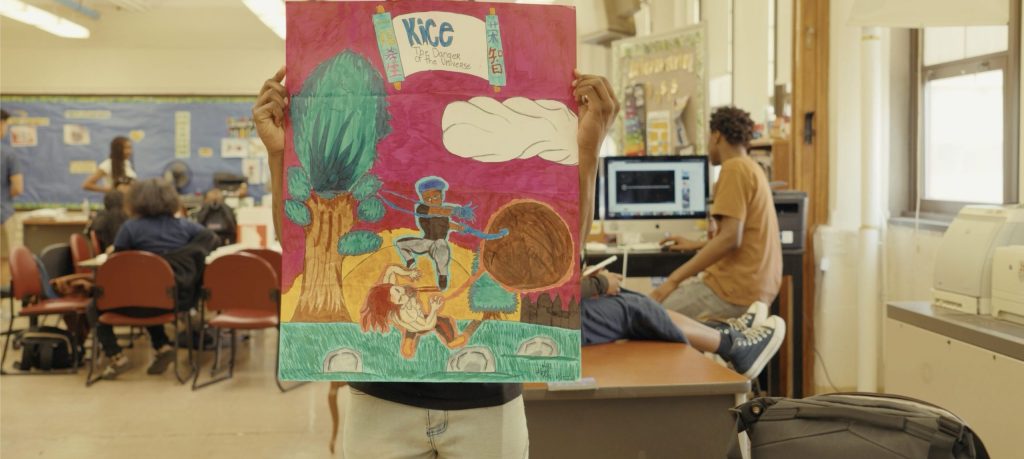 high school students actively engaged in creative storytelling through art.